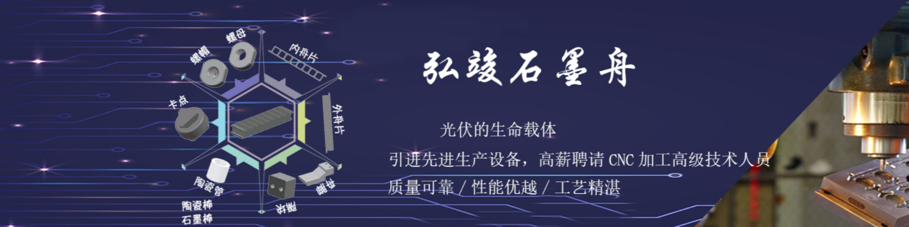 上海弘竣實(shí)業(yè)有限公司創(chuàng)建于2010年,是一家集科研、生產(chǎn)、銷(xiāo)售、安裝、服務(wù)為一體的高新科技企業(yè)。公司以雄厚的技術(shù)力量為基礎(chǔ),致力于新能源產(chǎn)品及其主要零部件的研發(fā)、生產(chǎn),同時(shí)生產(chǎn)半導(dǎo)體、醫(yī)療器械、精密模具等行業(yè)應(yīng)用的精密石墨制品。主要產(chǎn)品有石墨熱場(chǎng)、PECVD石墨舟、C/C框、燃料電池雙極板、半導(dǎo)體石墨件、光纖用石墨模具。