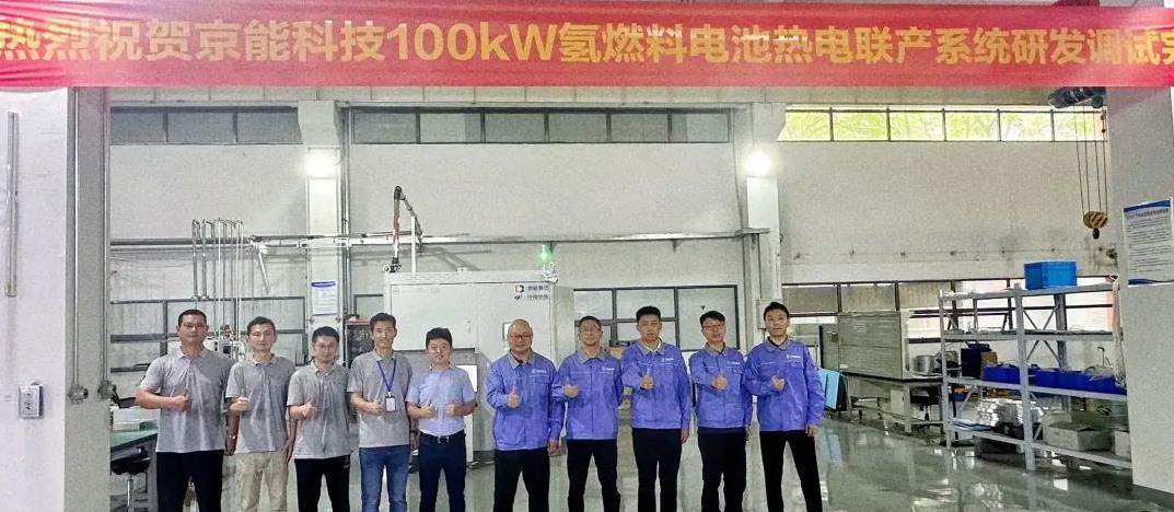 近日,江蘇鏵德氫能源科技有限公司與京能科技長三角分公司聯合開發的100kW氫燃料電池熱電聯產系統CarNeu-100完成調試