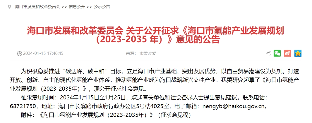 又一氫能新政策即將到來!海口起草氫能產業規劃