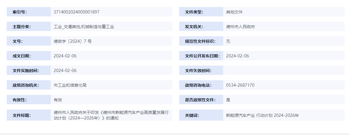 氫啟未來網獲悉,日前,為加快推動新能源汽車產業高質量發展,山東省德州市人民政府印發《德州市新能源汽車產業高質量發展行動計劃(2024-2026年)》(以下簡稱:行動計劃)。
