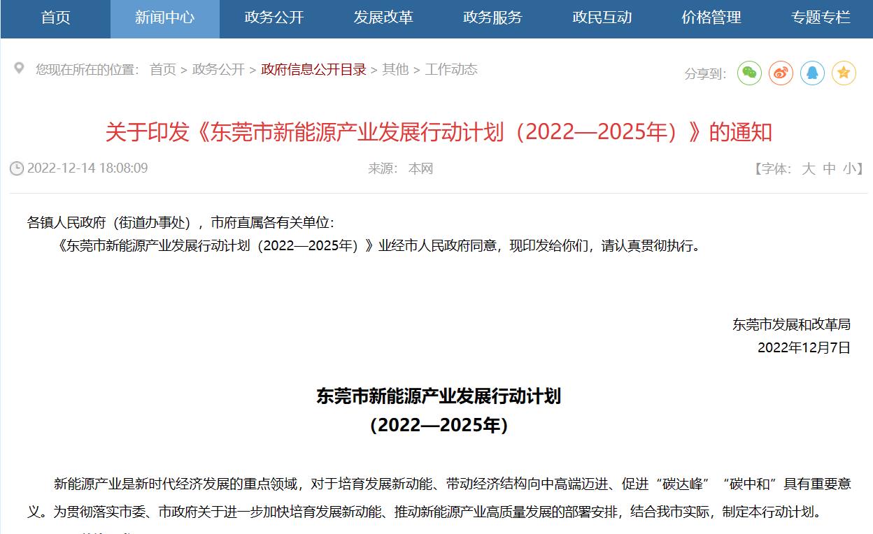 氫啟未來網獲悉,12月14日,東莞市發展和改革局發布關于印發《東莞市新能源產業發展行動計劃(2022-2025年)》的通知。