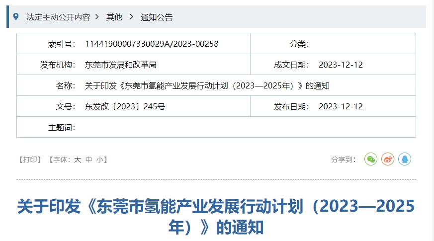 東莞市氫能產業發展行動計劃(2023-2025年)