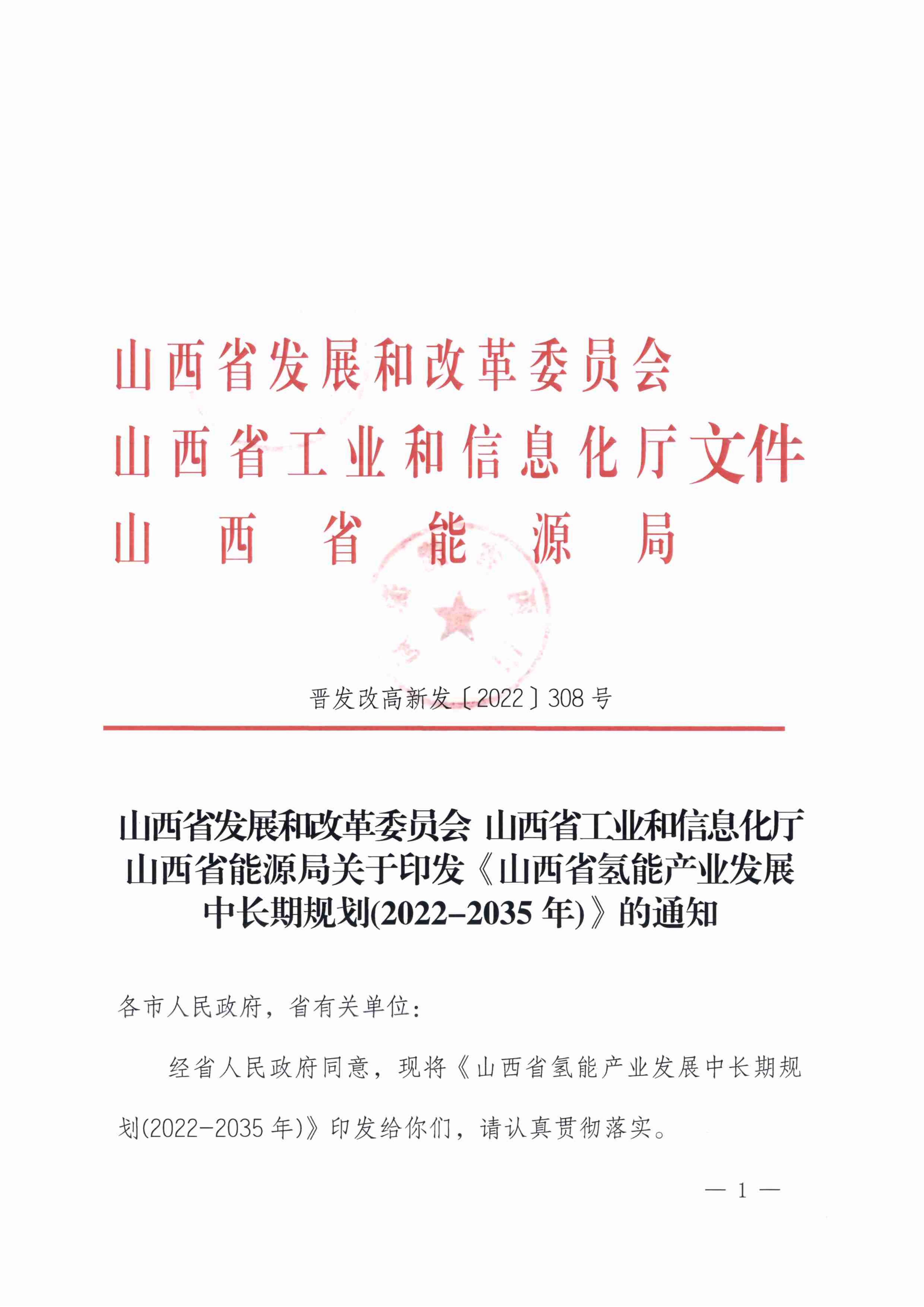 氫啟未來網獲悉,日前,山西省發展和改革委員會在其官網發布關于印發山西省氫能產業發展中長期規劃(2022-2035)的通知