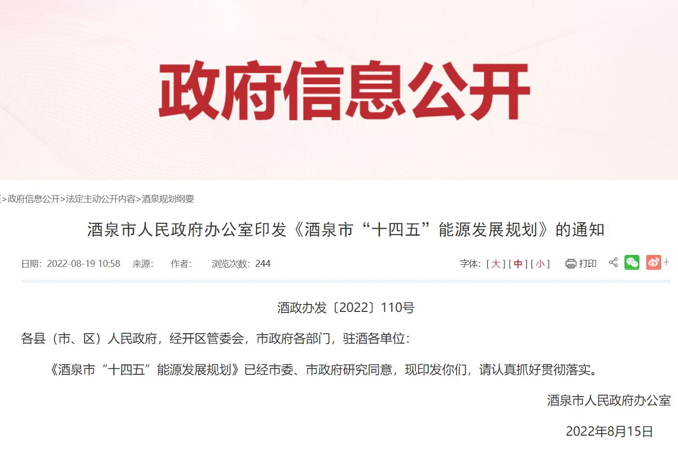 著力氫能裝備制造產業!《酒泉市“十四五”能源發展規劃》發布