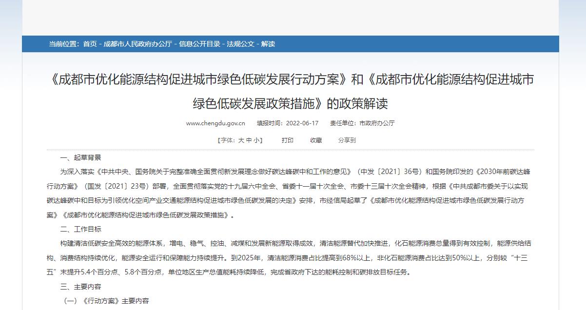 《成都市優(yōu)化能源結(jié)構(gòu)促進(jìn)城市綠色低碳發(fā)展行動(dòng)方案》和《成都市優(yōu)化能源結(jié)構(gòu)促進(jìn)城市綠色低碳發(fā)展政策措施》的政策解讀
