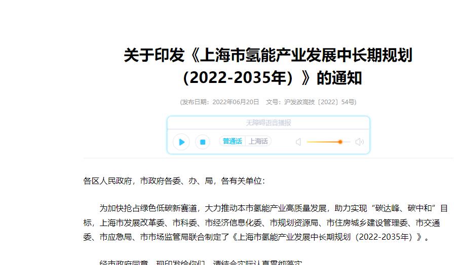 《上海市氫能產(chǎn)業(yè)發(fā)展中長(zhǎng)期規(guī)劃 (2022-2035年)》印發(fā)!2025年規(guī)模突破1000億元