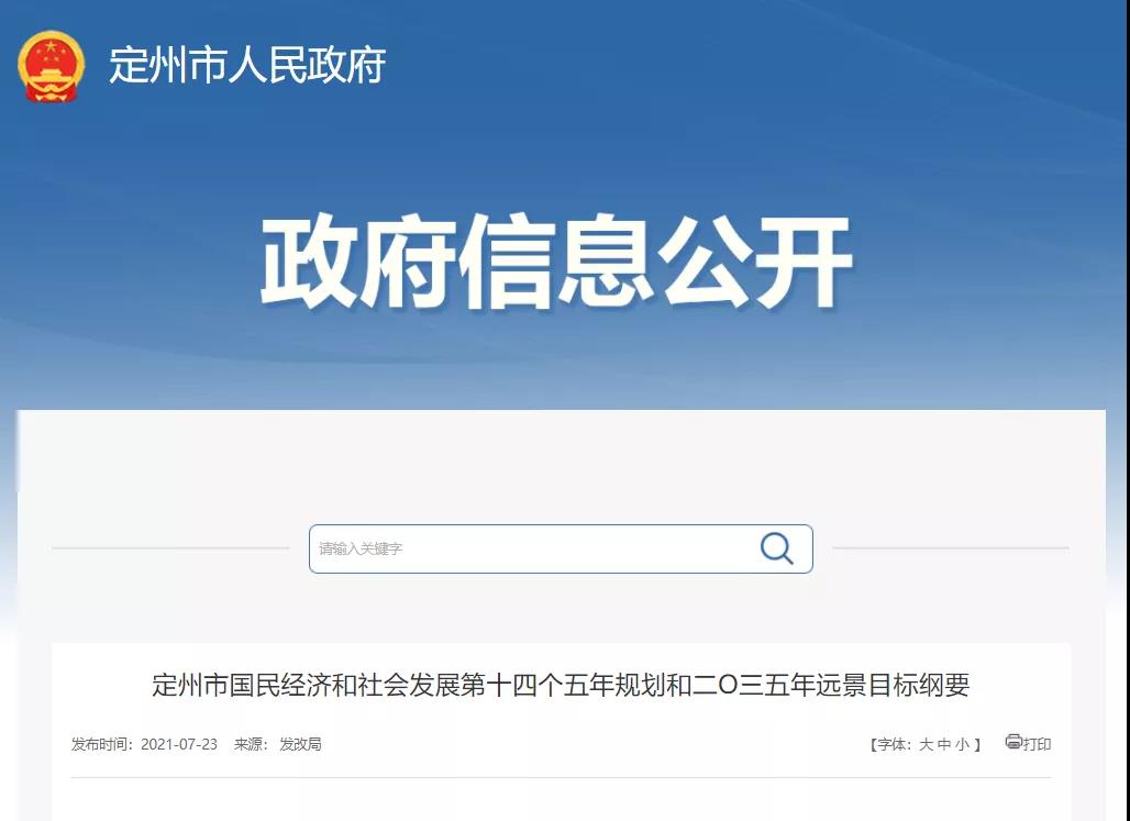 7月23日,定州市人民政府印發《定州市國民經濟和會發展第十四個五年規劃和二0三五年遠景目標綱要》的通知。定州作為省直管市,明確了建設京津冀開放型現代化節點城市的功能定位,賦予了定州在以首都為核心的世界 級城市群中的區域分工,定州站在了全新的發展起點上。