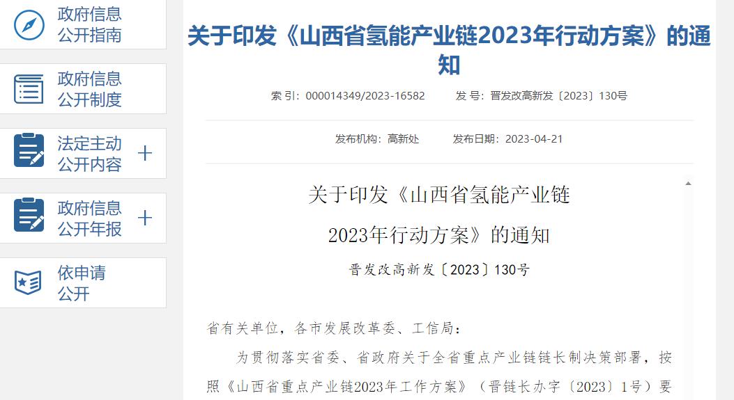 山西省發布氫能產業鏈2023年行動方案!