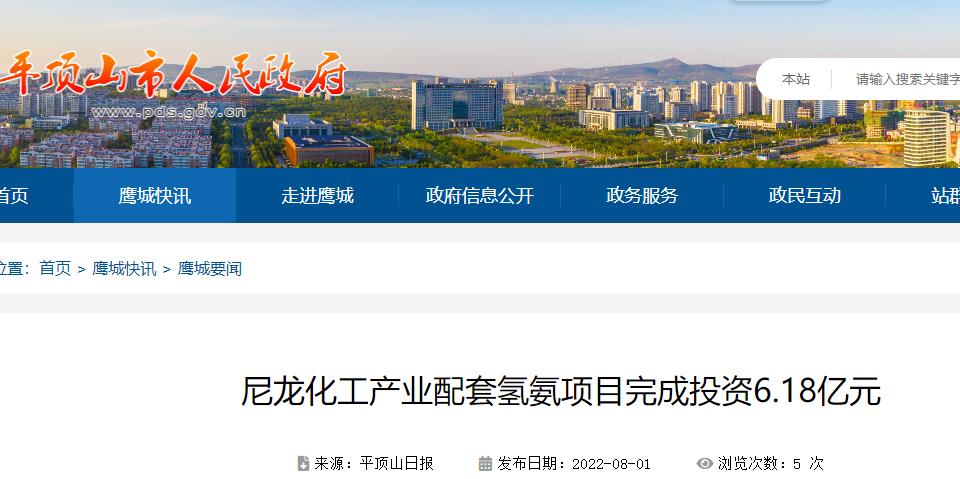 尼龍化工產(chǎn)業(yè)配套氫氨項(xiàng)目投資6.18億元