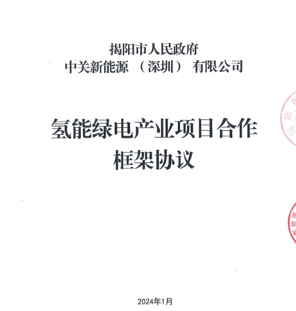 揭陽市政府與中關新能源簽訂氫能綠電合作框架協議,共建氫能產業、儲能電站等項目,推動政企合作,實現共贏。