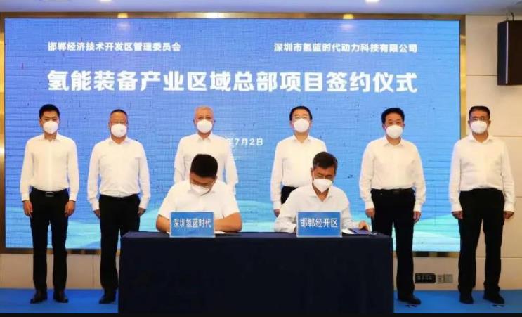 7月2日,河北省邯鄲市人民政府與深圳市氫藍時代動力科技有限公司在佛山市正式簽署氫能裝備產業區域總部項目戰略合作協議。邯鄲市委副書記、市長樊成華,高和平副市長、氫藍時代公司董事長金曉輝等政府和企業領導參加了簽約活動。