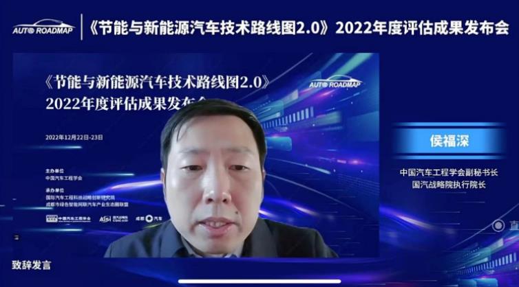 2022年12月23日,由中國汽車工程學會主辦,國際汽車工程科技戰(zhàn)略創(chuàng)新研究院、成都市綠色智能網(wǎng)聯(lián)汽車產(chǎn)業(yè)生態(tài)圈聯(lián)盟承辦的《節(jié)能與新能源汽車技術路線圖2.0》2022年度評估成果發(fā)布會圓滿落幕。本次發(fā)布會全程通過線上直播的方式進行,中國汽車工程學會副秘書長、國汽戰(zhàn)略院執(zhí)行院長侯福深為發(fā)布會致辭。