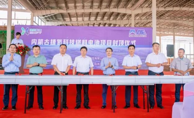 7月30日,內蒙古捷氫科技燃料電池項目封頂儀式隆重召開。自今年4月29日項目啟動以來,捷氫科技燃料電池項目僅3個月就成功完成封頂工作,比原計劃提前一個月加快了鄂爾多斯氫能產業的實施。捷氫科技燃料電池生產基地地處鄂爾多斯市伊金霍洛旗蒙蘇經濟開發區零碳產業園區,項目總投資約1.66億元,土地面積約6.66萬平方米,預計年產5000套燃料電池系統和儲氫系統。