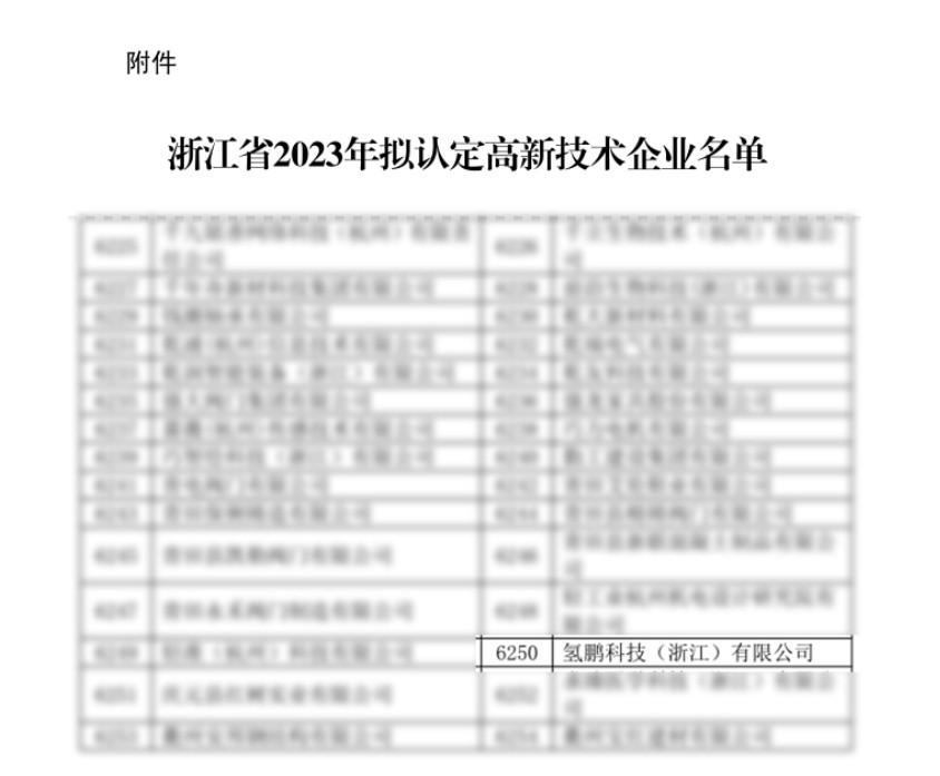 喜訊!氫鵬科技榮獲“高新技術企業”稱號