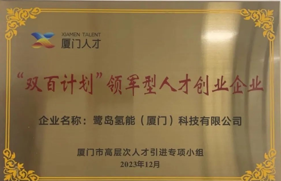 鷺島氫能榮獲廈門市“雙百計劃”領軍型人才創業企業稱號