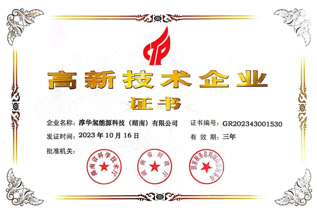 熱烈祝賀淳華氫能獲得國家“高新技術企業”認定