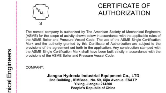 氫楓集團(tuán)順利取得ASME “S+U+U2” 證書