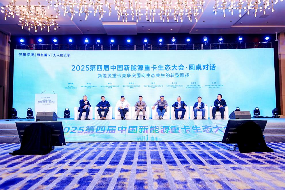 在嘉賓演講環(huán)節(jié)結(jié)束后,云南中閩物流科技有限公司總經(jīng)理李小龍,哈密交通物流集團(tuán)陸港中心總經(jīng)理涂杰,深圳市盛弘電氣股份有限公司重卡業(yè)務(wù)部總經(jīng)理王鵬,重慶中際新能源科技有限公司董事長(zhǎng)王東然,遠(yuǎn)程新能源商用車(chē)集團(tuán)重卡營(yíng)銷(xiāo)公司執(zhí)行總經(jīng)理張培泉,唐山市中嶸供應(yīng)鏈管理有限公司總經(jīng)理郭寧,陜西中藍(lán)遠(yuǎn)宏電動(dòng)交通有限公司總經(jīng)理常衛(wèi)等七位新能源重卡生態(tài)鏈專(zhuān)家參加了由電車(chē)資源綠色重卡研究院院長(zhǎng)詹華彥擔(dān)任主持人,以“新能源重卡競(jìng)爭(zhēng)突圍向生態(tài)共生的轉(zhuǎn)型路徑”為主題的2025第四屆中國(guó)新能源重卡生態(tài)大會(huì)·圓桌對(duì)話(huà)。