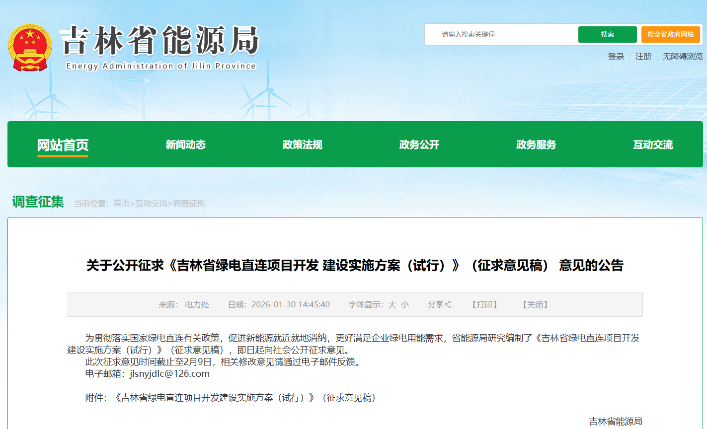 [ 導讀 ]近日,吉林省能源局就《吉林省綠電直連項目開發建設實施方案(試行)》(征求意見稿)公開征求意見。意見稿在方案適用范圍中提到...