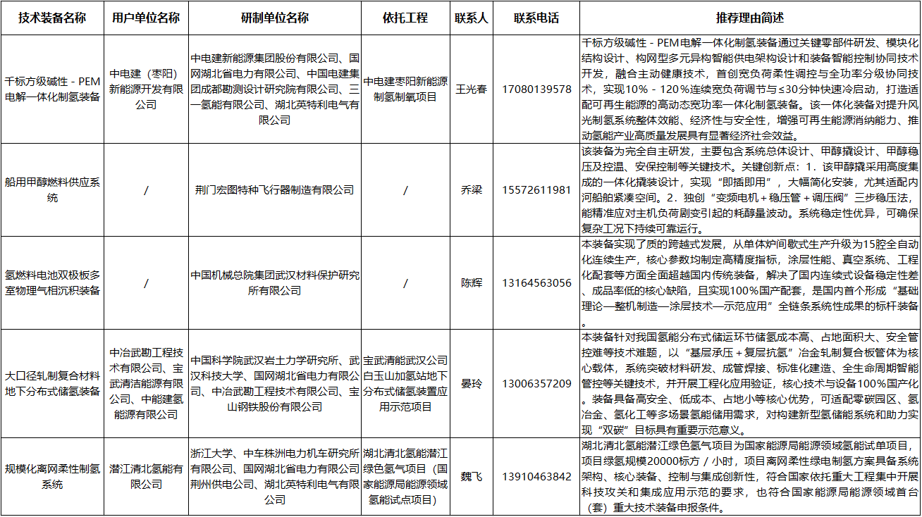 近日,湖北省能源局公示第六批能源領域首臺(套) 重大技術裝備申報項目。其中,氫能相關項目5項,詳情如下: