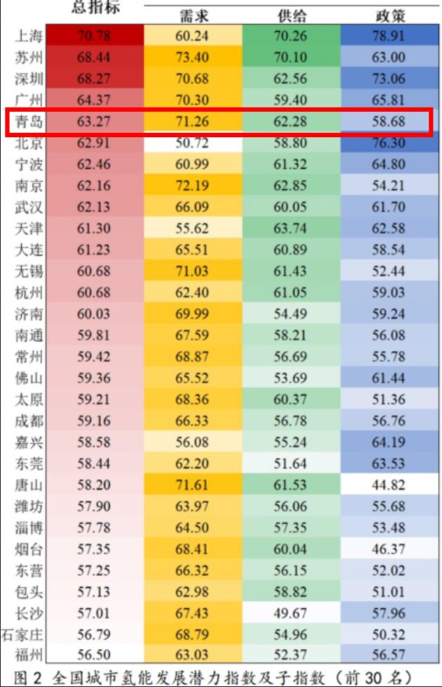 中國氫能城市發展潛力排行榜發布,青島全國第五!