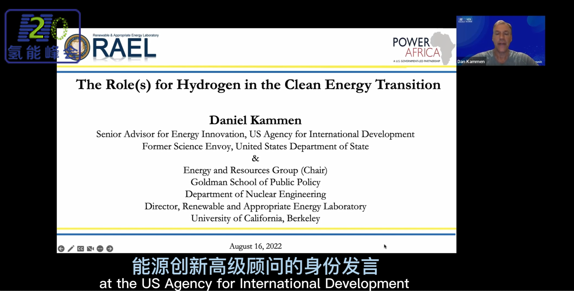 丹尼爾·科曼教授從國際形式視角,分享了《美國能源部<氫能計劃發展規劃>對全球氫能發展之影響》,他認為:“現在與開發的新的可再生能源相比,運營化石燃料發電廠更便宜,而氫能作為一種清潔能源,氫能發電的價格居高不小,需要加快部署與繼續投資研究,加速推進降低氫能產業制造儲存成本,才能更好的快速實現綠色過渡的目標”