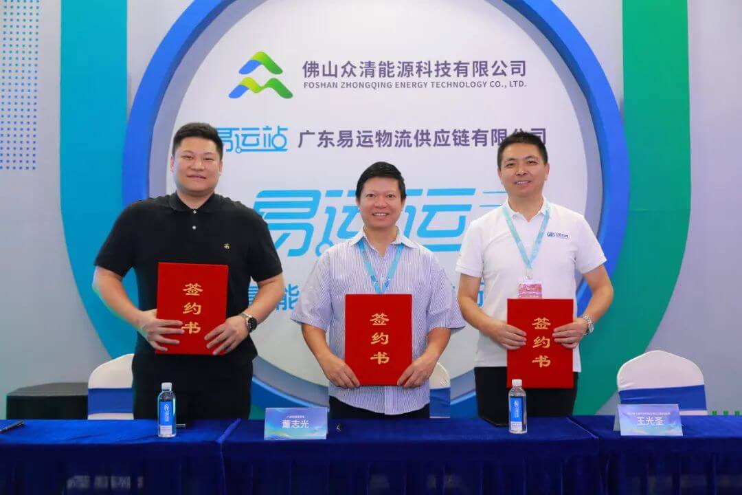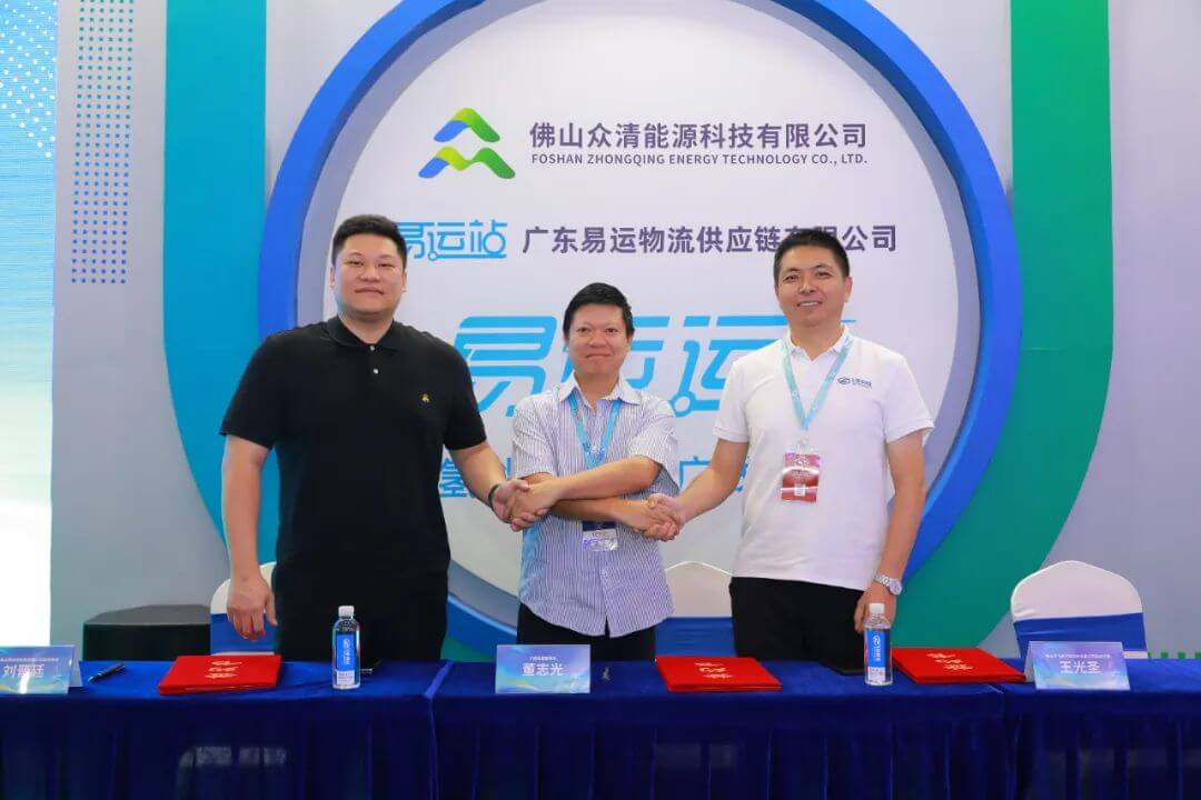 展會期間還舉辦了“綠色運蔬 從氫開始”百車采購協議”簽約儀式,廣東易運物流供應鏈有限公司副總經理劉晉延、物流供應鏈事業部總監何偉輝,廣順集團董事長董志光,飛馳科技副總經理王光圣等企業領導出席簽訂儀式。此次協議的簽訂,一方面旨在貫徹落實《廣東省加快氫能產業創新發展的意見》,以氫能應用場景推動“制、儲、運、用”全產業鏈條發展,利用《綠色運蔬》農貿物流園應用場景,推廣應用氫能冷鏈運輸車,另一方面三方將共同組織優勢資源,以燃料電池示范城市群應用為結合點,在廣東示范城市群地區共同合作推廣100輛飛馳牌4.5T燃料電池冷藏運輸車?!栋佘嚥少弲f議》的簽署給氫能物流運輸車應用端帶來創新的合作運營模式,同時本次簽約是《綠色運蔬》項目落地中最為重要的環節,也是三方打造廣東省氫能應用示范園重要的第一步。