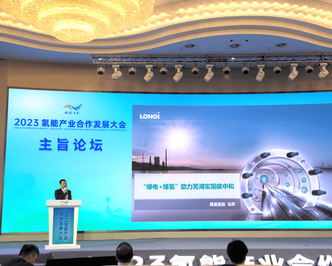 11月10日,由蕪湖市人民政府、安徽省發展和改革委員會、安徽省政府外事辦公室主辦的2023氫能產業合作發展大會在蕪湖市圓滿閉幕,隆基氫能總裁馬軍受邀出席并做主旨演講。