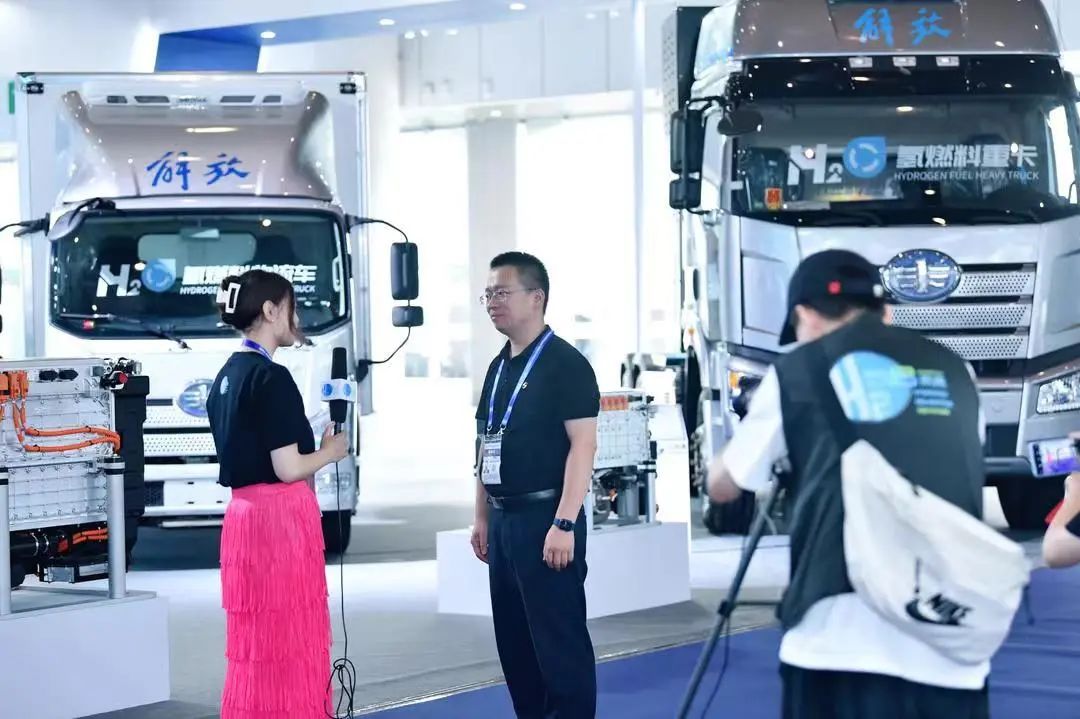成都億華通動力科技有限公司現場展示了億華通G系列核心產品的發動機與燃料電池汽車。