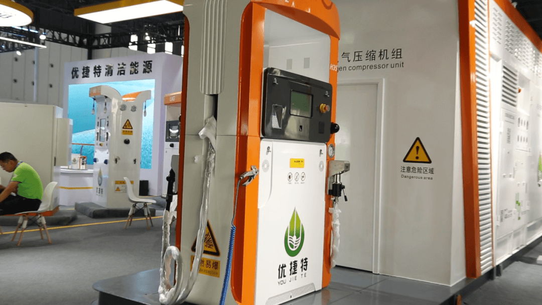 優捷特清潔能源有限公司展區現場提供了2022年冬奧會核心賽區的唯一加氫站模型沙盤,以及業內首架35MPa和70MPa兩種壓力氫氣加注一體化撬。