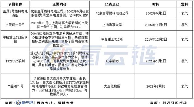 據(jù)氫云鏈數(shù)據(jù)庫統(tǒng)計,國內(nèi)的燃料電池船舶研究起步較晚,二十年僅有5個可參考的案例。直至近期,國內(nèi)燃料電池船舶在動力系統(tǒng)認證和整船方面同時發(fā)展迎來實質性的突破。