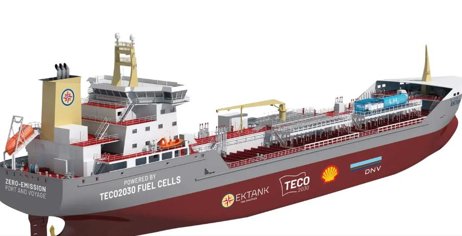 這艘18.600載重噸的產品油輪計劃安裝4000公斤的壓縮氫氣存儲器和東元2030的燃料電池,并希望在2024年進行示范。