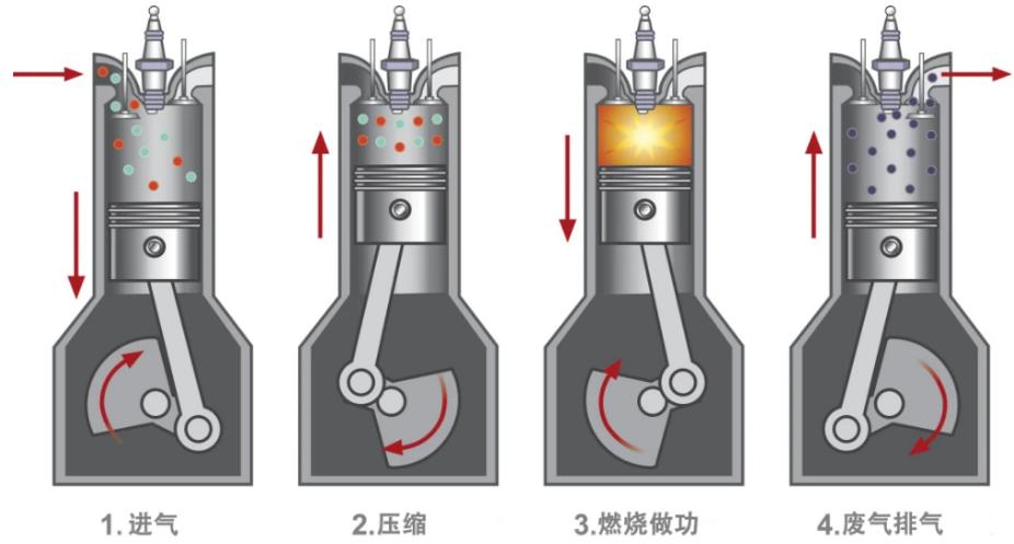 高溫高壓的燃?xì)馔苿?dòng)活塞運(yùn)動(dòng),從而轉(zhuǎn)動(dòng)曲軸