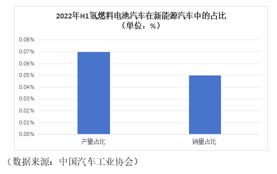 2022年1-6月,中國新能源汽車的產銷量分別達到了266.1萬輛和260.0萬輛。其中,燃料電池汽車產銷量分別為1803輛和1379輛,占比分別為0.07%和0.05%??梢钥闯?,氫燃料電池汽車仍是市場中較為小眾的新能源汽車產品。