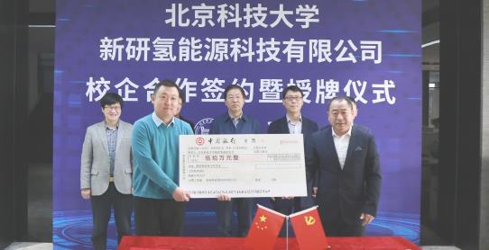 3月23日下午,北京科技大學與新研氫能源科技有限公司校企合作簽約暨“新研氫能英才獎學金”捐贈簽約儀式在北京經濟技術開發區舉行。北京新研氫能源科技有限公司向學校捐贈50萬元,設立“新研氫能英才獎學金”,用于數理學院學生培養。