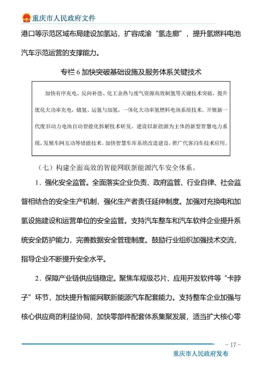 加快充換電和加氫基礎設施建設。創建國家氫燃料電池汽車示范城市,支持重點區縣在園區、高速公路服務區、港口等示范區域布局建設加氫站,擴容成渝“氫走廊”,提升氫燃料電池汽車示范運營的支撐能力。