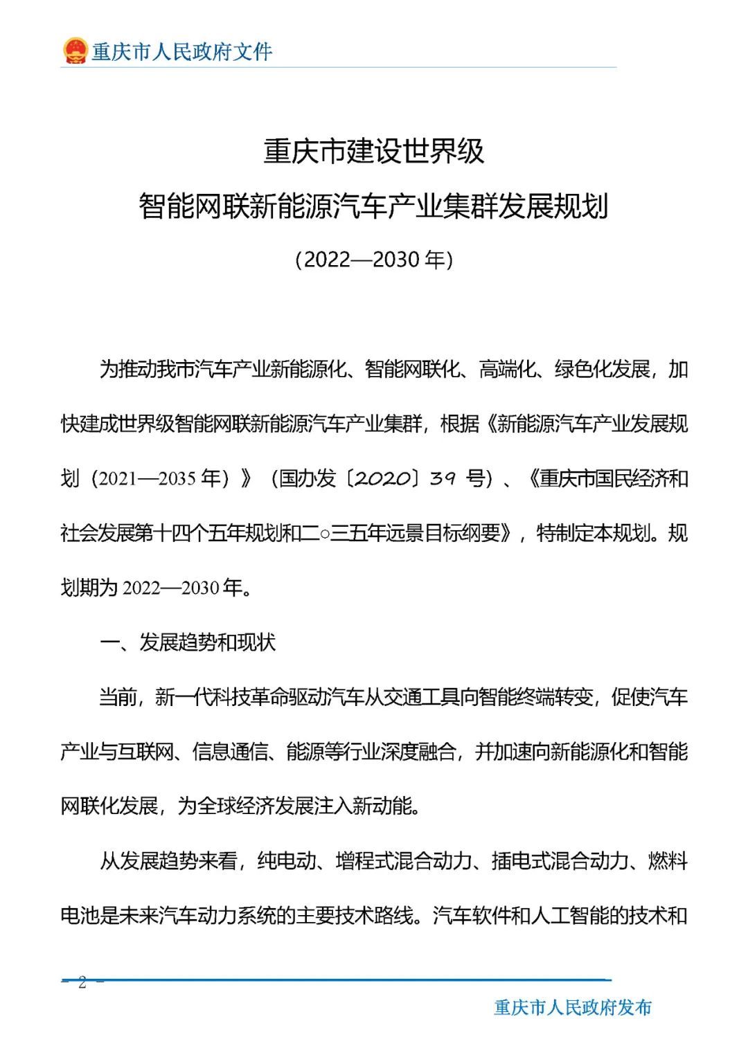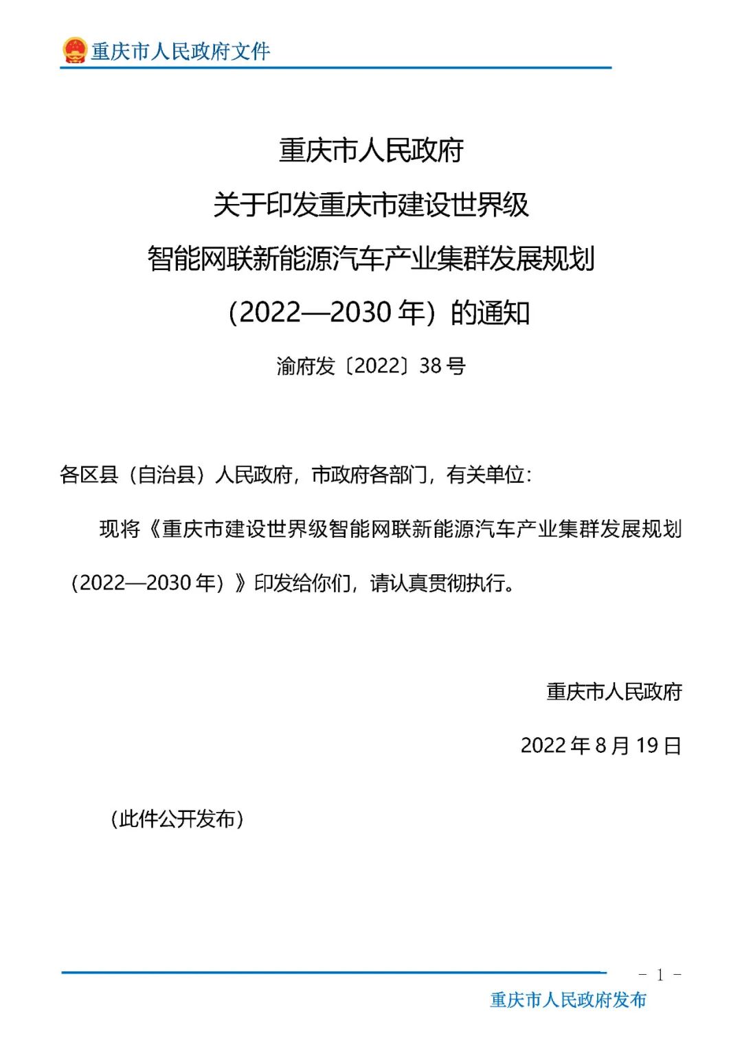 9月8日,重慶市政府發布關于印發《重慶市建設世界級智能網聯新能源汽車產業集群發展規劃(2022—2030年)》的通知(以下簡稱《規劃》)。