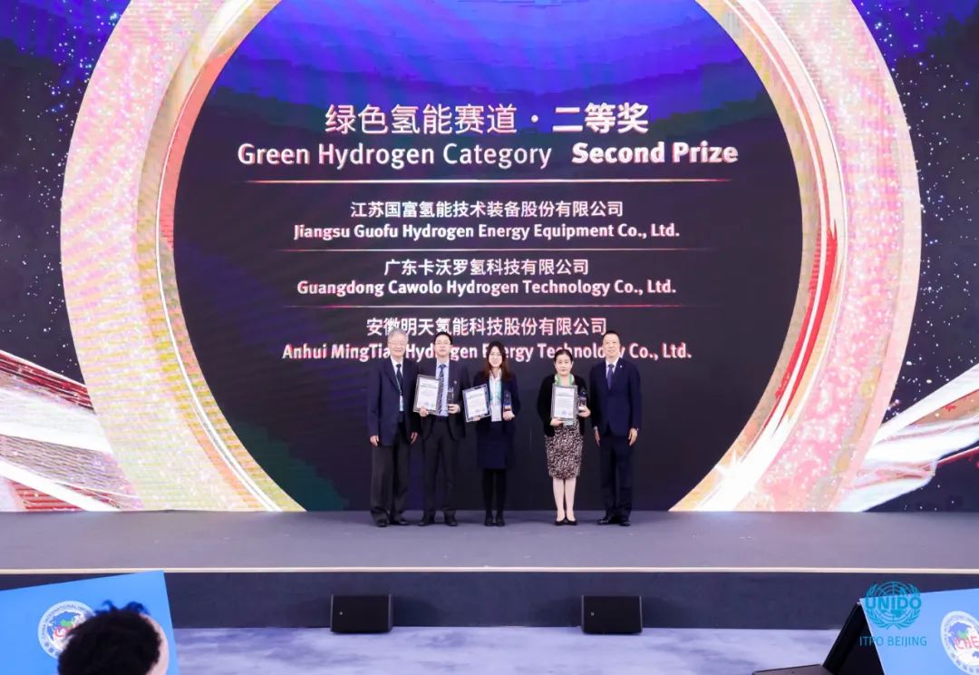聯(lián)合國工業(yè)發(fā)展組織的Global Call 2023頒獎儀式于2023年11月6日在第六屆中國國際進口博覽會國家會展中心(上海)圓滿落下帷幕。國富氫能參賽項目“Go for Green Hydrogen - Equipment whole industry one stop solution for energy storage,fuel cell vehicles and hydrogen refueling stations”榮獲綠色氫能賽道二等獎。