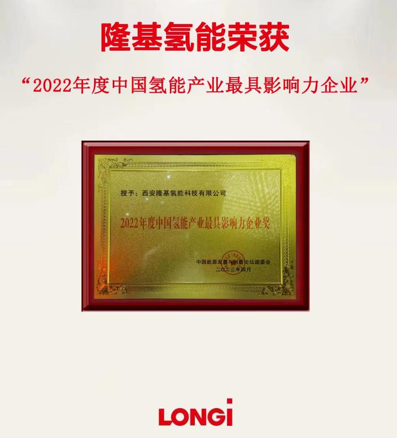 ▲圖:隆基氫能榮獲“2022年度中國氫能產業最具影響力企業獎”