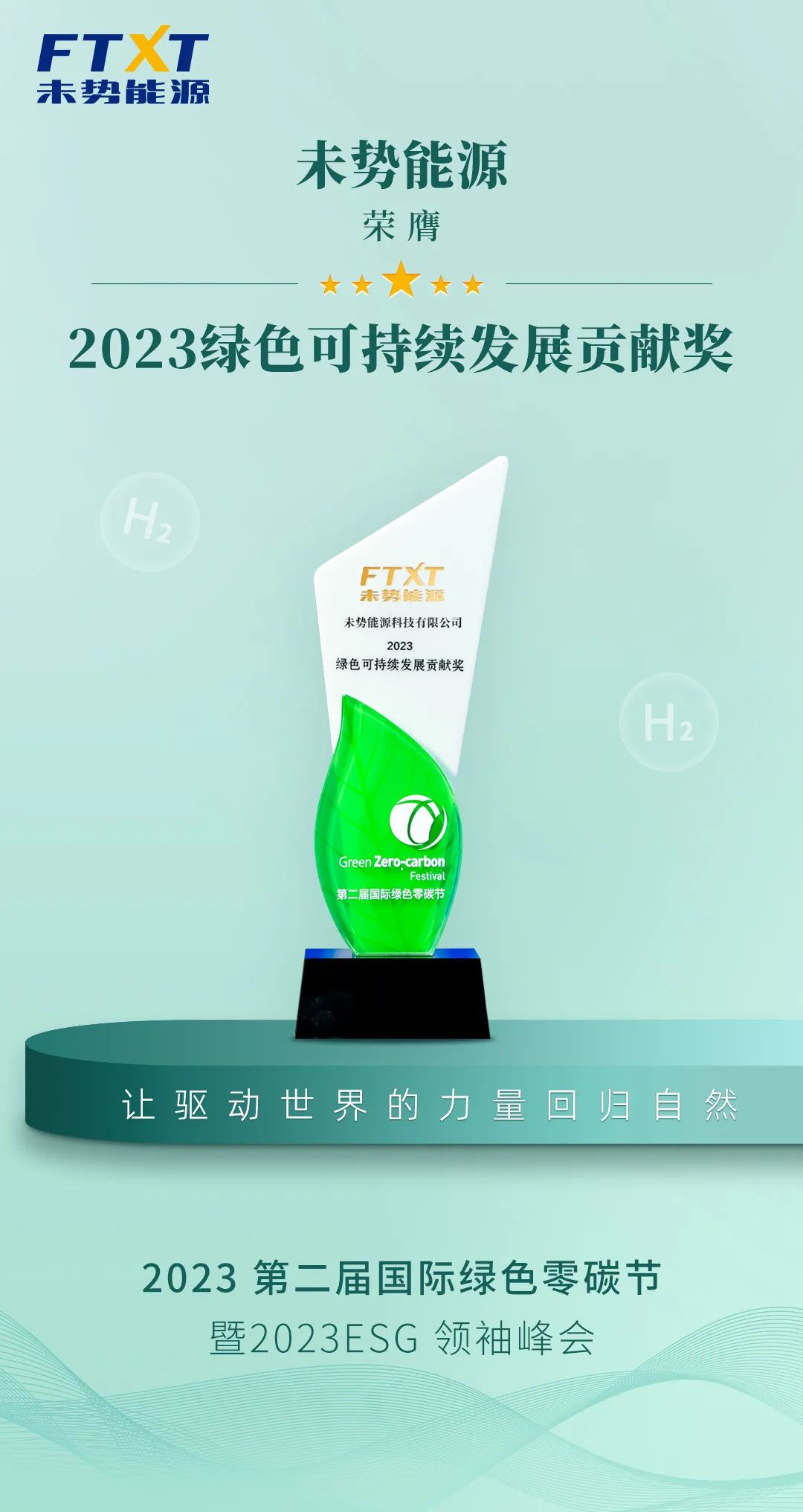 6月15日,由數(shù)央網(wǎng)、數(shù)央公益聯(lián)合國內(nèi)眾多大眾及財(cái)經(jīng)媒體共同主辦,以“邁向碳中和之路“為主題的2023第二屆國際綠色零碳節(jié)暨2023ESG領(lǐng)袖峰會(huì)在北京舉行,未勢能源憑借在氫能領(lǐng)域技術(shù)創(chuàng)新與市場應(yīng)用出色表現(xiàn)力,成功榮獲“2023綠色可持續(xù)發(fā)展貢獻(xiàn)獎(jiǎng)”。