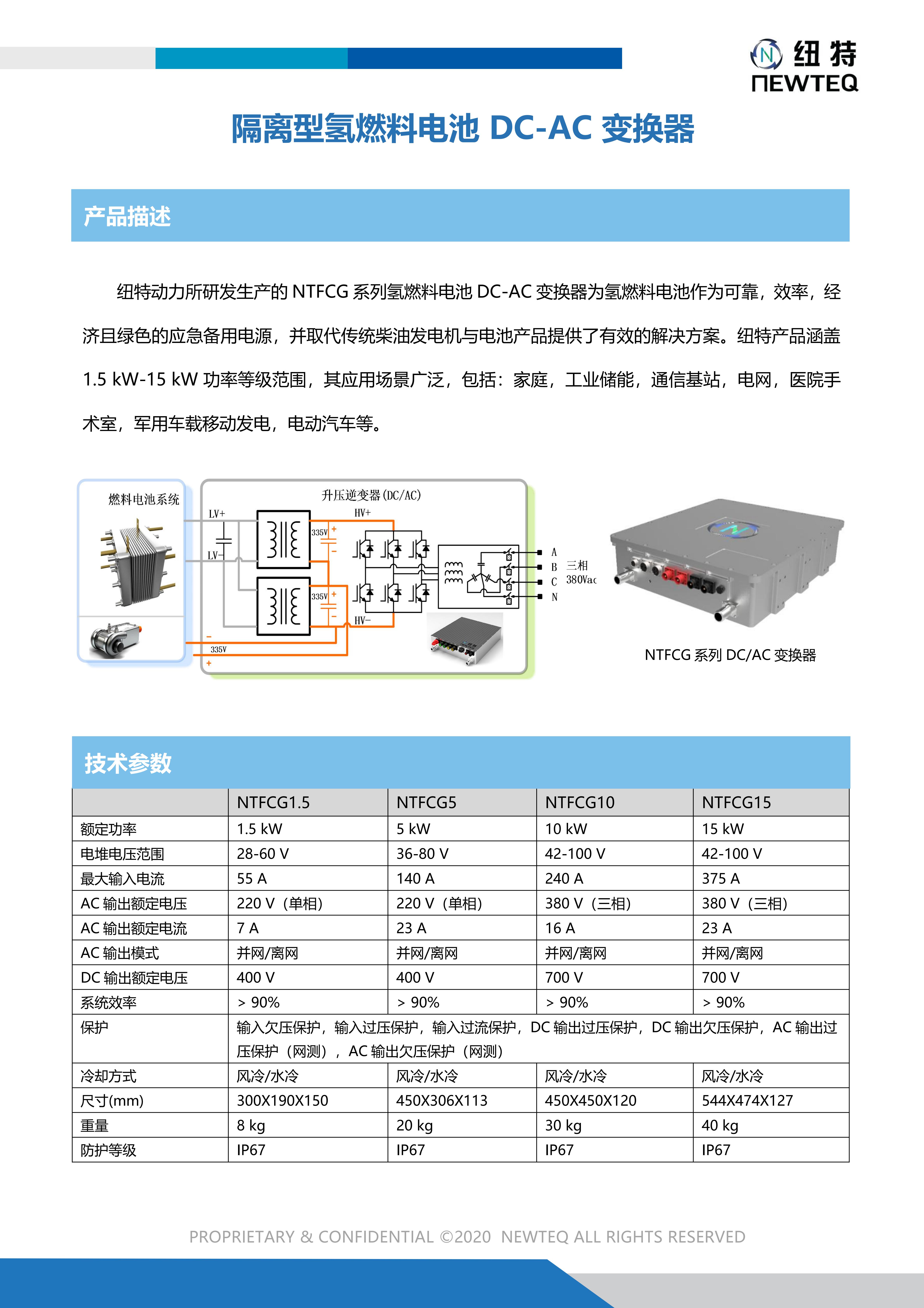 商品名稱:NTFCG系列——隔離型氫燃料電池DC/AC變換器